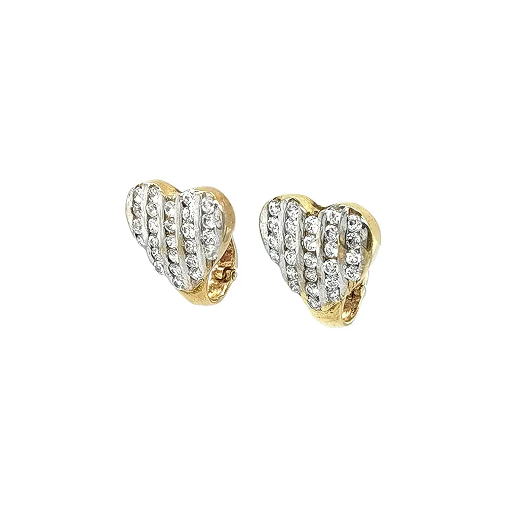 Goldohrringe in Herzform mit kleinen Strasssteinen verziert