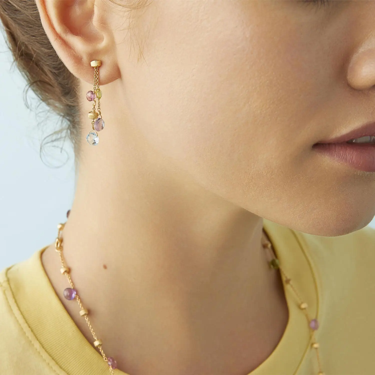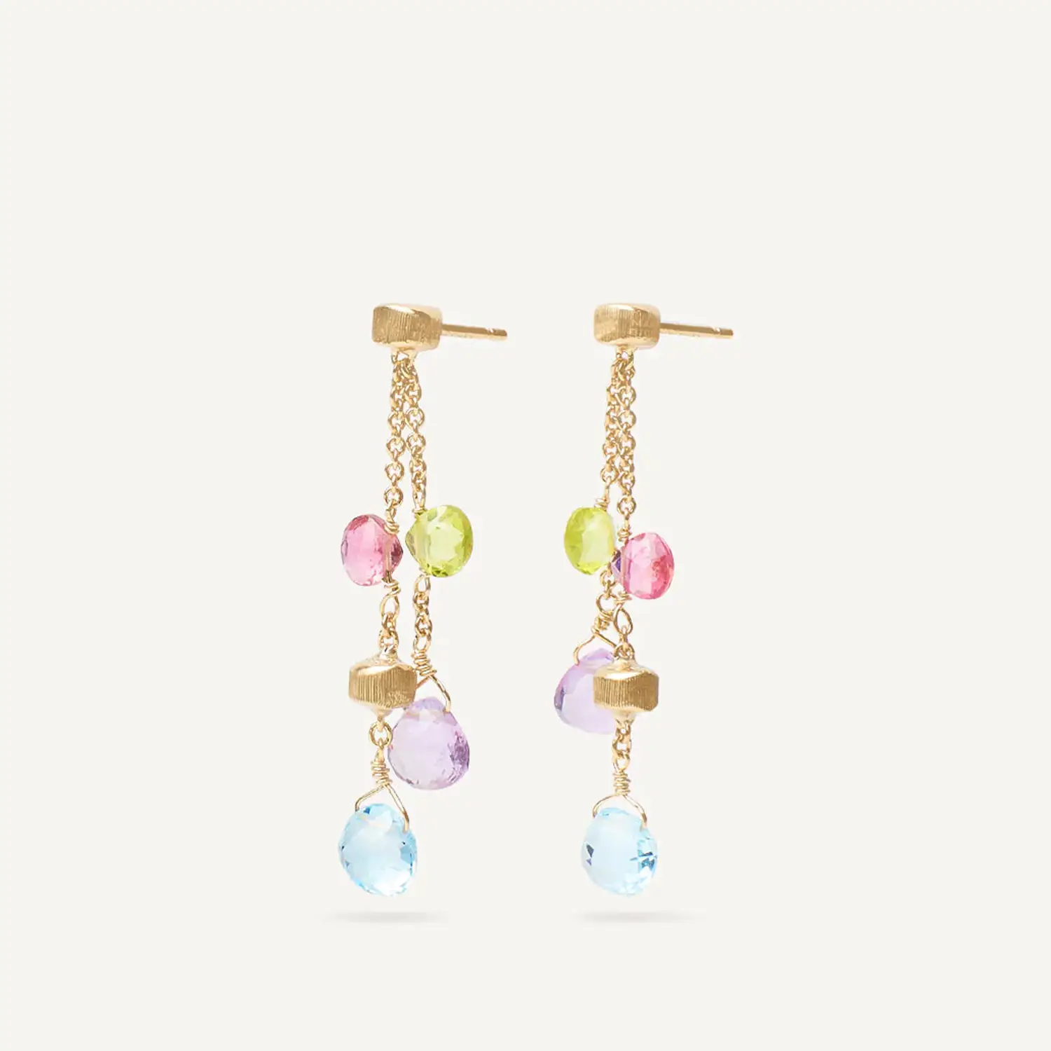Das Modell OB914 MIX01 Y 02 hat eine Länge von etwa 3,7 cm und wirkt dadurch besonders elegant beim Tragen. Die Kombination aus 18 Karat Gold, farbenfrohen Edelsteinen und italienischer Handwerkskunst von Marco Bicego macht diese Ohrringe zu einem exklusiven Geschenk.