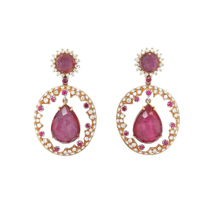 Goldohrringe mit Rubinen und Diamanten