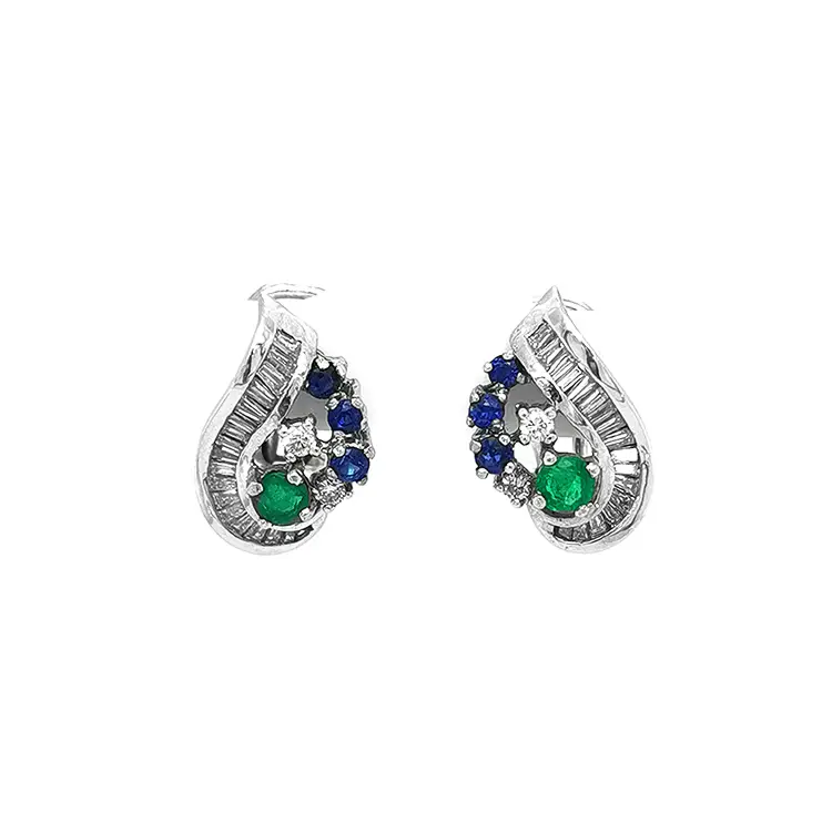 Goldohrringe mit Smaragden, Saphiren und Diamanten