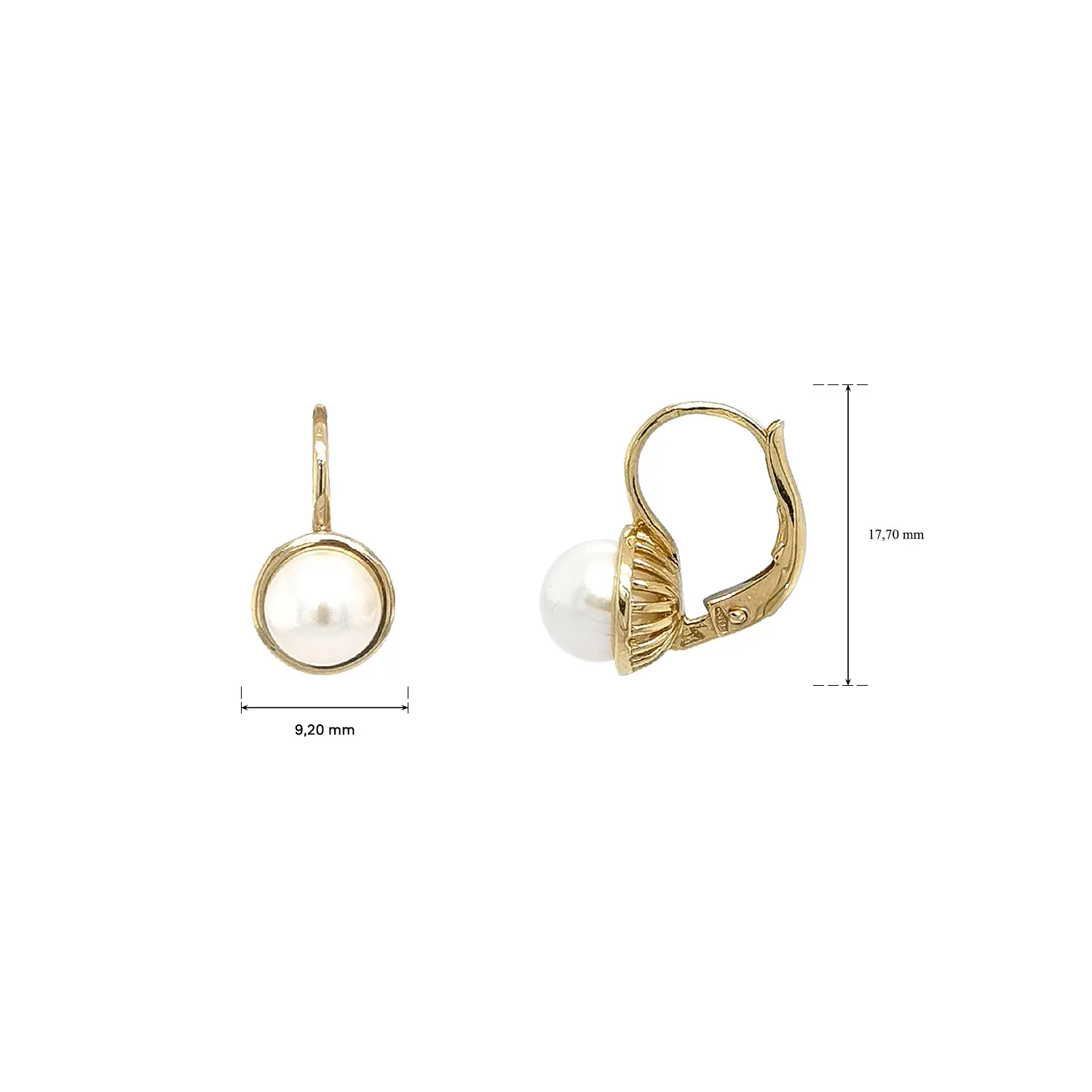 Diese eleganten Ohrringe aus Gold mit perfekt runden weißen Perlen verkörpern eine zeitlose Schönheit, die niemals an Charme verliert. Das zarte, hängende Design besticht durch klare Linien und eine feine Goldfassung, die jede Perle sicher umschließt und gleichzeitig ihren sanften, seidigen Schimmer hervorhebt. Feminin und harmonisch – ideal für den Alltag wie auch für besondere Anlässe.
