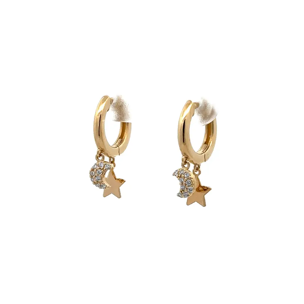Goldohrringe Mondsichel und Stern mit Zirkonen