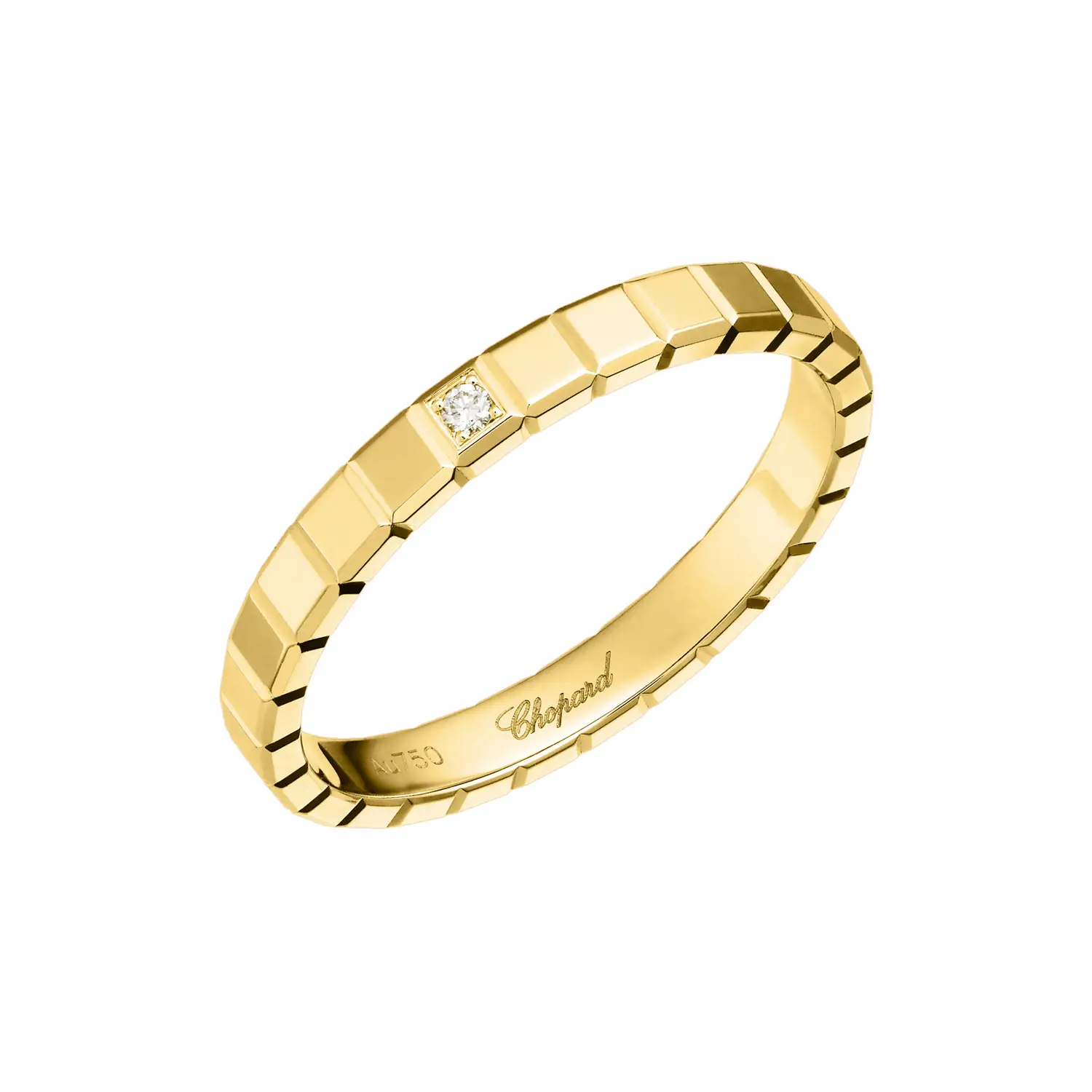 Der Chopard Ice Cube Pure Ring aus 18 K ethischem Gelbgold verkörpert moderne Eleganz in ihrer reinsten Form. Das ikonische, vom Würfel inspirierte Design reflektiert das Licht bei jeder Bewegung und erzeugt ein feines Spiel goldener Reflexionen. Die minimalistische Silhouette wird durch zarte Diamanten mit einem Gesamtgewicht von etwa 0,01 ct veredelt, die dem Schmuckstück einen dezenten Glanz verleihen, ohne seine harmonische Schlichtheit zu beeinträchtigen.