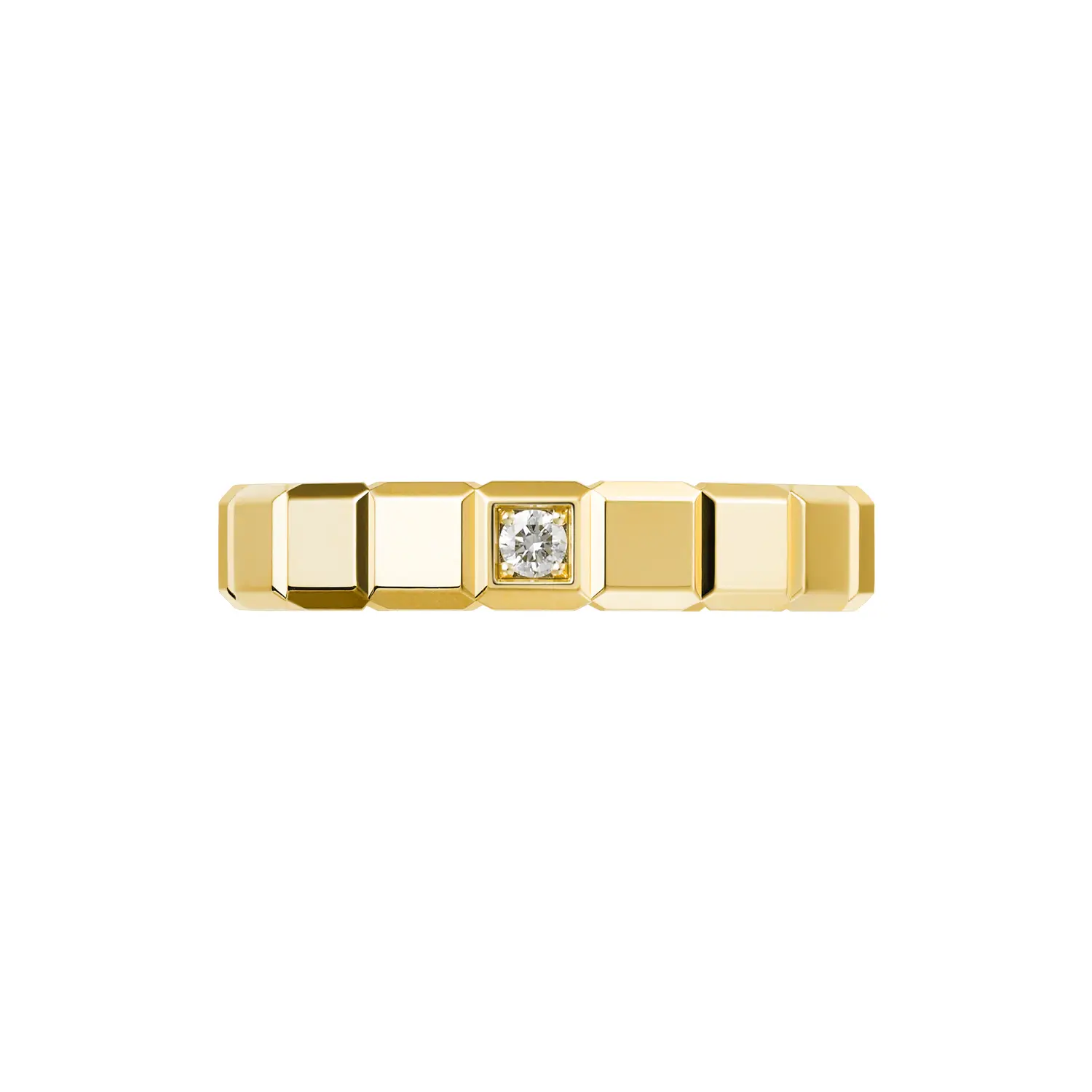 Der Chopard Ice Cube Pure Ring aus 18 K ethischem Gelbgold verkörpert moderne Eleganz und feine Handwerkskunst. Sein ikonisches, vom Würfel inspiriertes Design reflektiert das Licht auf perfekte Weise und erzeugt einen sanften goldenen Schimmer, der an funkelnde Eiskristalle erinnert. Ein zarter Diamant von etwa 0,03 ct verleiht dem Schmuckstück einen dezenten Glanz, ohne die minimalistische Harmonie zu stören.