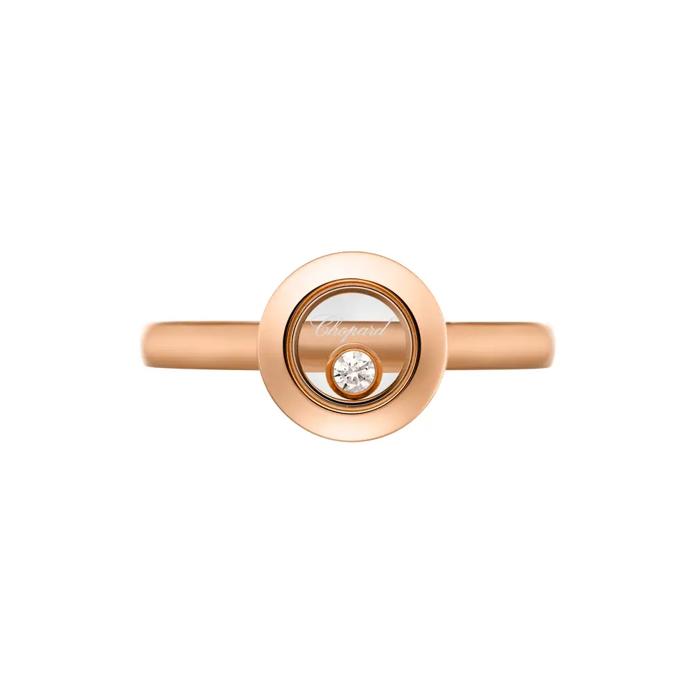 Jedes Detail zeigt höchste Schweizer Juwelierskunst von Chopard – das perfekt polierte Roségold umrahmt einen Diamanten mit 0,05 ct, Farbe F-G und Reinheit IF-VVS. Die Kombination aus Präzision, Zartheit und luxuriösem Glanz macht diesen Ring zu einem Symbol für Freude, Eleganz und Individualität, das jeden Moment erstrahlen lässt.