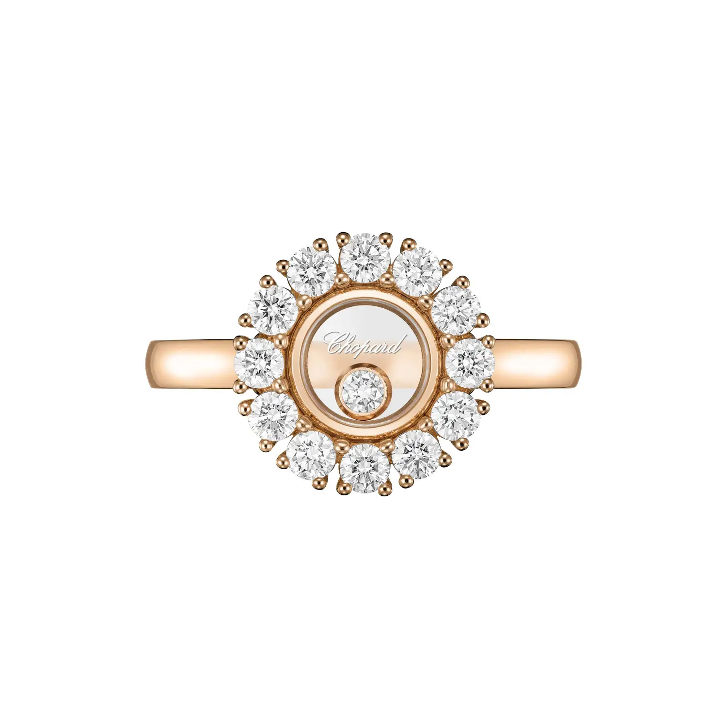 Dieser Ring aus der Happy Diamonds Icons Kollektion besteht aus 18-karätigem ethischem Roségold, das dem Schmuckstück eine warme, elegante Ausstrahlung verleiht. Im Zentrum steht das ikonische Chopard-Element — frei bewegliche Diamanten, die zwischen zwei Saphirgläsern schweben. Ihre sanften Bewegungen erzeugen ein faszinierendes Lichtspiel, das Freude, Freiheit und spielerische Eleganz symbolisiert.