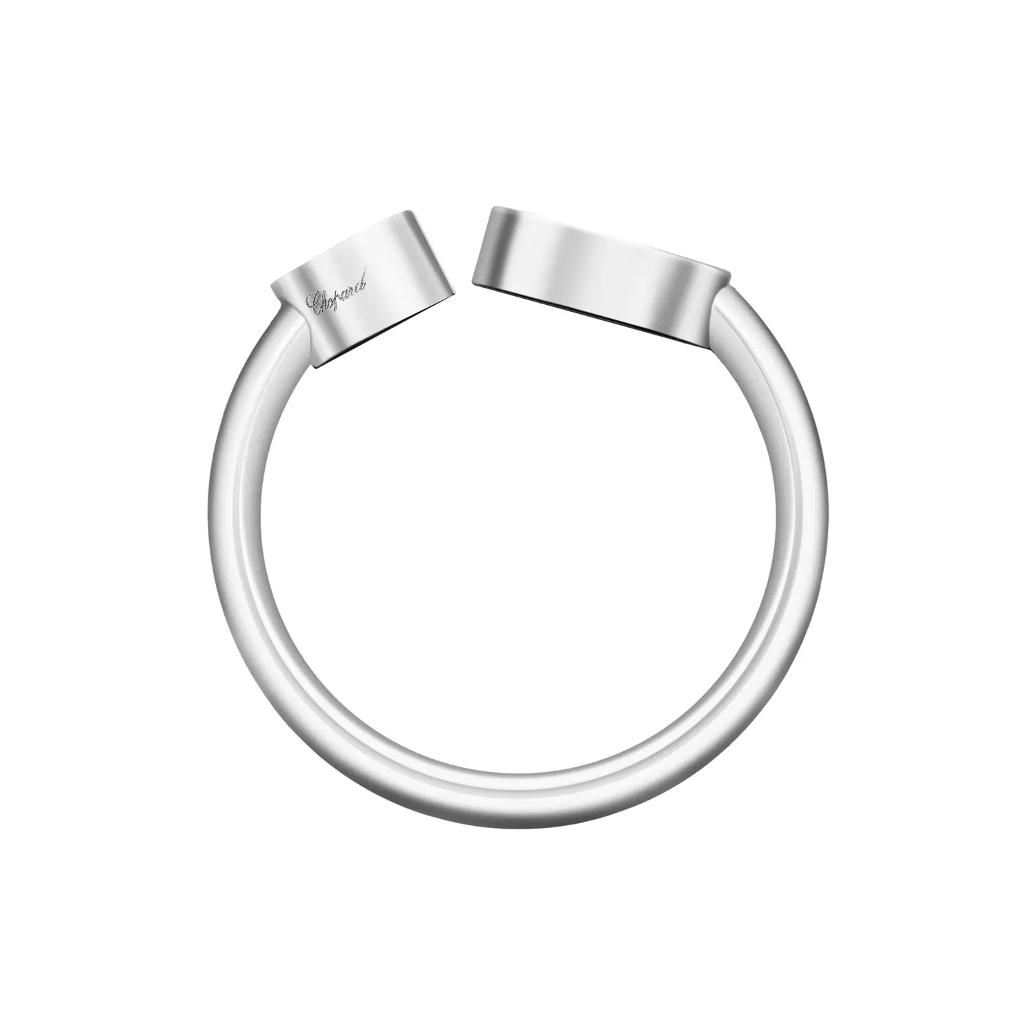 Der Chopard Happy Hearts 829482-1910 Ring vereint Symbolik von Liebe, Licht und Bewegung in perfekter Harmonie. Gefertigt aus 18 Karat Weißgold, ist er mit 19 Brillanten (insgesamt ca. 0,18 ct) besetzt und verfügt über einen frei beweglichen Diamanten (ca. 0,04 ct), der zwischen zwei Saphirgläsern tanzt – ein ikonisches Merkmal der Happy Hearts Kollektion.