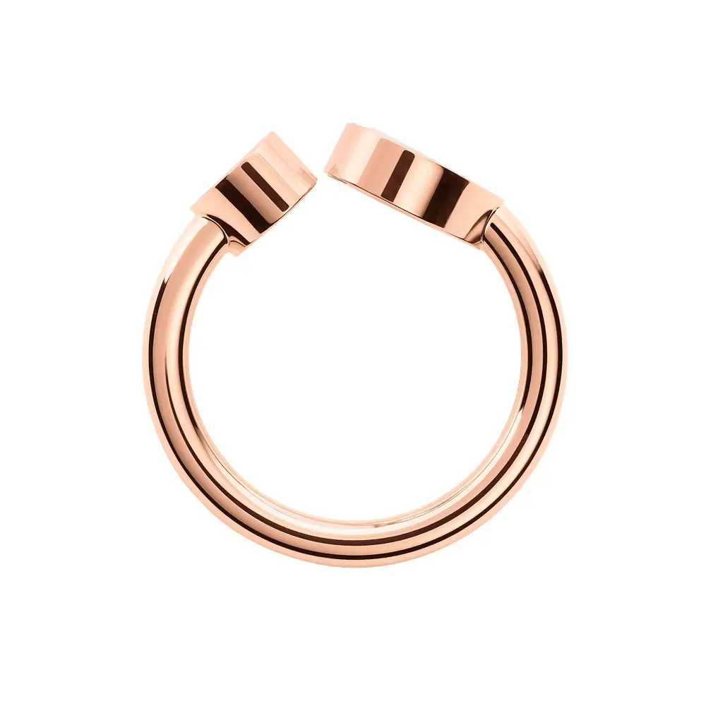 Der Chopard Happy Hearts Ring 829482-5312 aus 18 K Roségold vereint Eleganz, Zartheit und Romantik in perfekter Harmonie. Das Design kombiniert zwei herzförmige Motive – eines mit weißem Perlmutt und eines mit dem ikonischen frei beweglichen Diamanten zwischen zwei Saphirgläsern. Dieses charakteristische Merkmal der Happy Hearts Kollektion steht für Liebe, Freude und innere Harmonie und macht den Ring zu einem persönlichen Symbol femininer Schönheit.