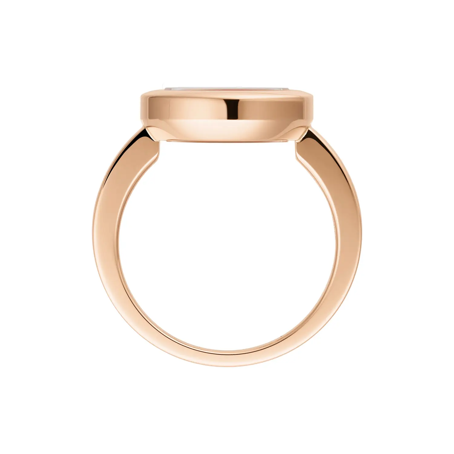 Der Chopard Happy Spirit 828230-9011 Ring vereint Licht, Bewegung und Eleganz in vollendeter Harmonie – ein Markenzeichen dieser ikonischen Kollektion. Gefertigt aus einer Kombination von 18 Karat Rosé- und Weißgold, symbolisieren die konzentrischen Kreise Unendlichkeit und innere Ruhe. Im Zentrum tanzt ein Brillant von ca. 0,09 ct frei zwischen zwei Saphirgläsern und fängt das Licht bei jeder Bewegung ein.