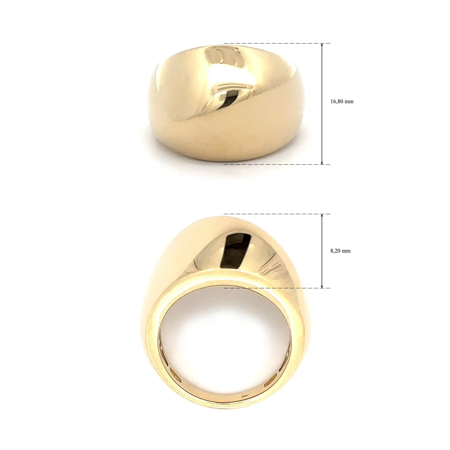 Dieser elegante Ring besticht durch sein klar strukturiertes, massives und makellos poliertes Design, das die natürliche Schönheit von Gelbgold hervorhebt. Das breite Profil verleiht dem Schmuckstück eine moderne und selbstbewusste Ausstrahlung, während die sanft abgerundete Form höchsten Tragekomfort im Alltag gewährleistet. Die minimalistische Silhouette verleiht dem Ring einen zeitlosen Charakter, der sowohl moderne als auch klassische Looks perfekt ergänzt.