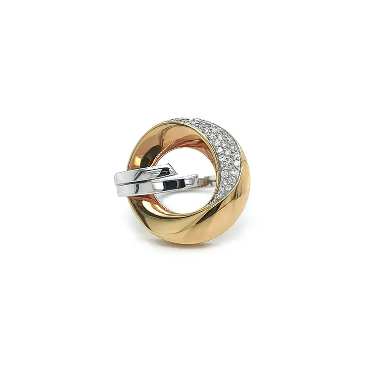 Der Damen-Goldring mit Diamanten von BENY ist für Frauen, die wissen, was sie wollen - Luxus, Eleganz und Stil. Dieser moderne Ring aus Weiß- und Gelbgold mit runden Diamanten wird von allen Frauen geschätzt, die funkelnden Schmuck mögen. Der Ring ist in einer luxuriösen Schachtel verpackt, die ihn zu einem perfekten Geschenk macht.