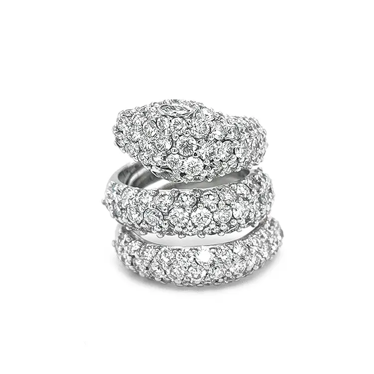 Das Design (25,20 × 23,00 mm, Höhe 6,00 mm) fasst 138 natürliche Diamanten mit einer Gesamtkaratzahl von 7,41 ct, alle im Rundschliff (2,50 mm, Farbe G, Reinheit VS). Jeder Stein wurde mit höchster Präzision gefasst, um ein intensives Funkeln zu erzeugen.