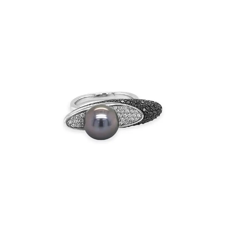 Goldring mit natürlicher Tahiti-Perle und Diamanten