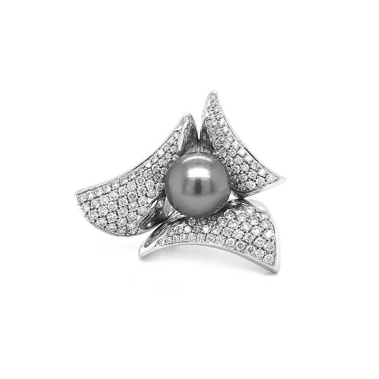 Um die Perle herum funkeln 143 natürliche weiße Diamanten mit einem Gesamtgewicht von 3,71 ct, Farbe G, Reinheit VS, die dem Ring unvergleichlichen Glanz verleihen. Jeder Stein ist mit höchster Präzision gefasst, was die außergewöhnliche Handwerkskunst und Liebe zum Detail der Marke BENY widerspiegelt.