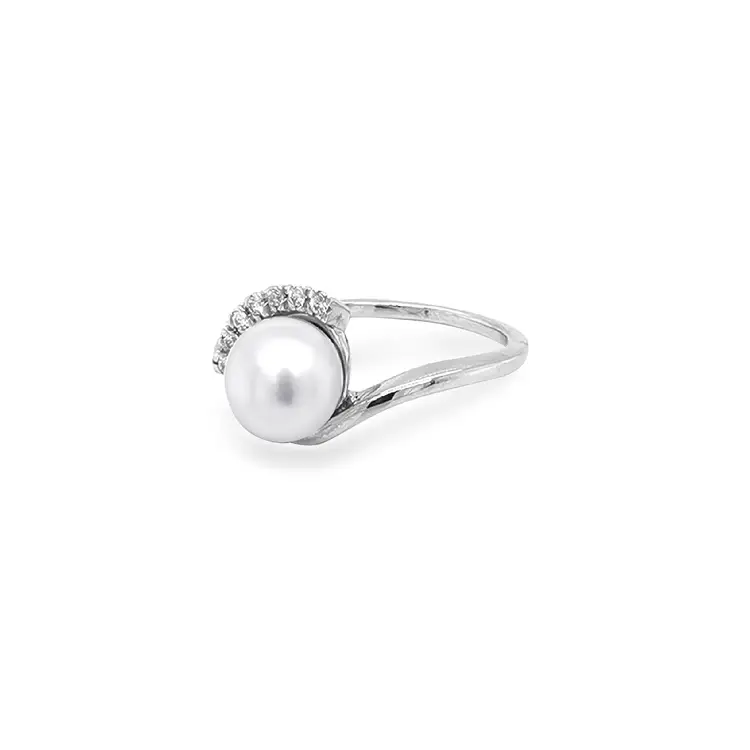 Goldring mit Perle und Zirkonen