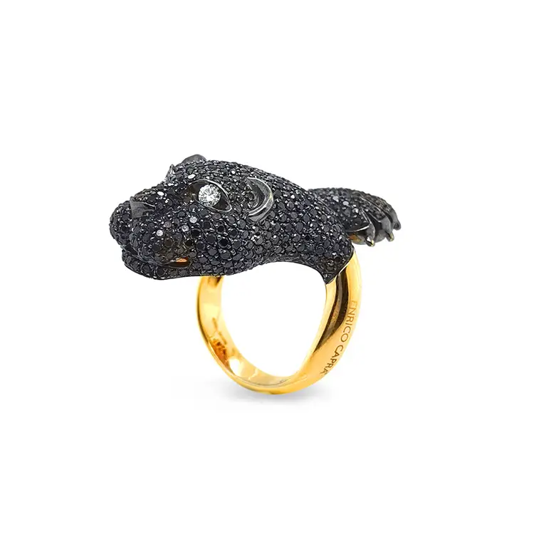 Goldring mit schwarzen und weißen Diamanten