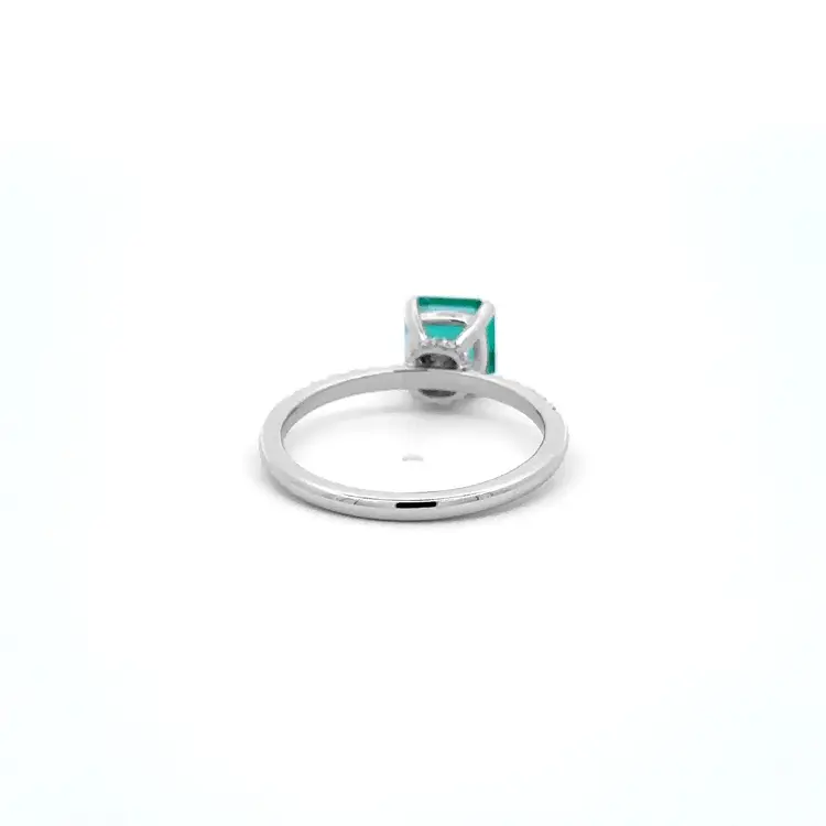 Dieser Smaragd- und Diamantring von Beny Jewellery ist ein Symbol zeitloser Eleganz und handwerklicher Perfektion. Gefertigt aus 18 kt (750/1000) poliertem Weißgold, beeindruckt er durch ausgewogene Proportionen und präzise Verarbeitung. Im Zentrum erstrahlt ein natürlicher Smaragd von 1,13 ct im seltenen Asscher-Schliff, dessen sattes Grün Ruhe und Raffinesse ausstrahlt.