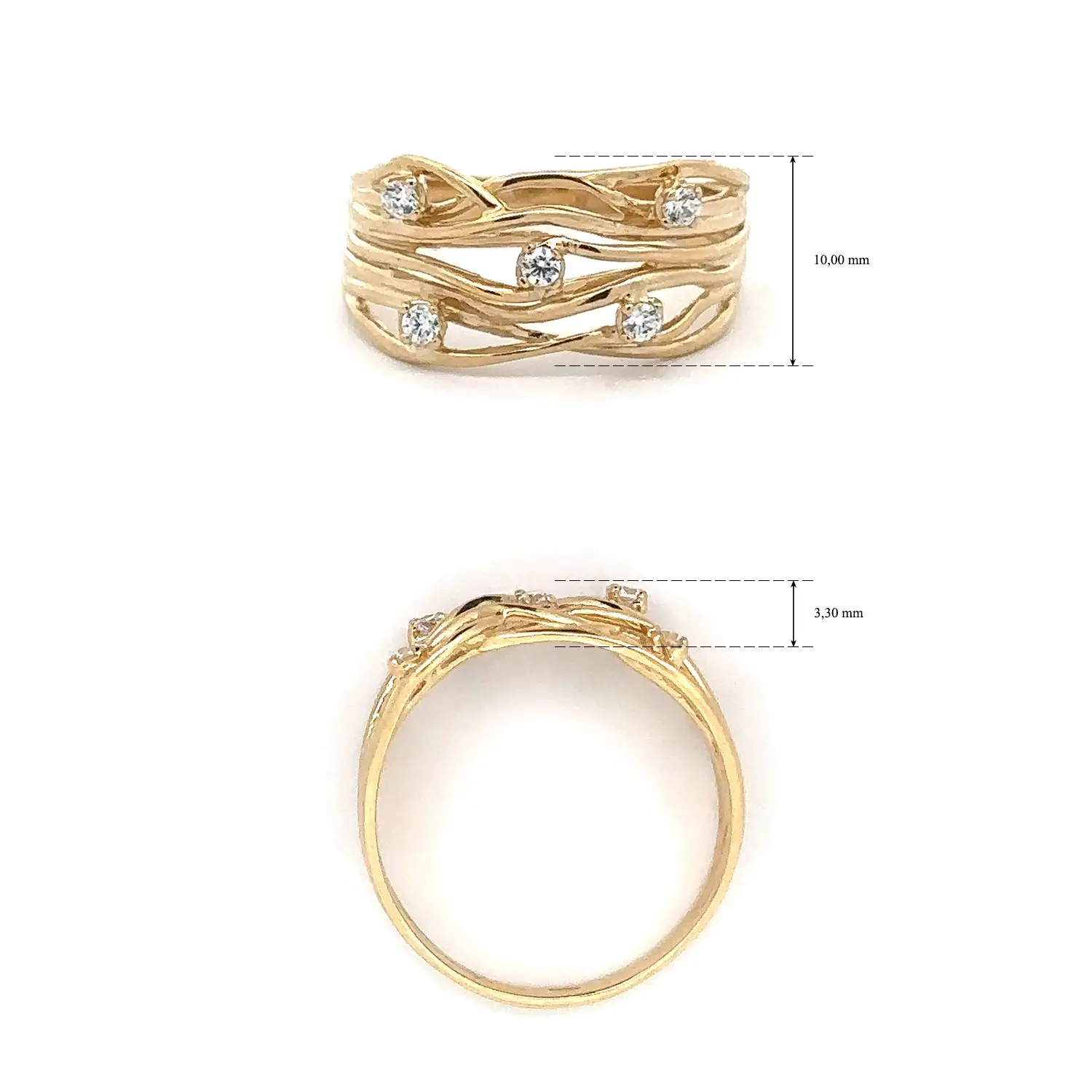 Goldring mit verflochtenem Design und Zirkonia