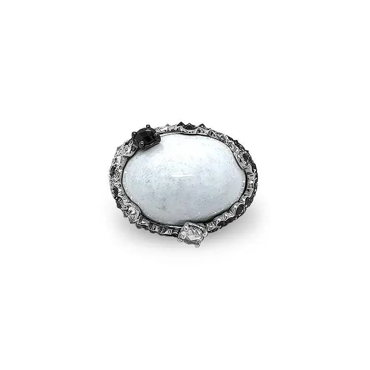 Goldring mit weißem Achat und Diamanten