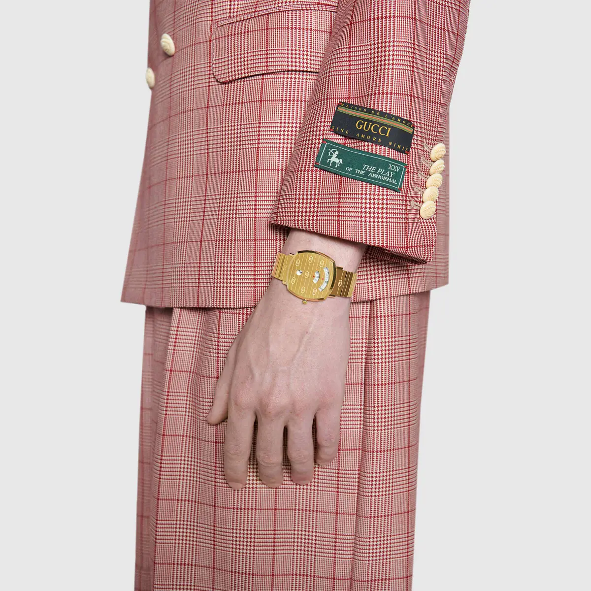 Das goldfarbene analoge Zifferblatt verfügt über eine Datumsanzeige; für Präzision sorgt ein Ronda-Quarzwerk. Alltagstauglich dank Wasserdichtigkeit 3 ATM / 30 m für normalen Wasserkontakt. Die Gucci Grip YA157409 ist die ideale Wahl für alle, die eine stilvolle, markante und zuverlässige Uhr mit unverwechselbarer Handschrift suchen.