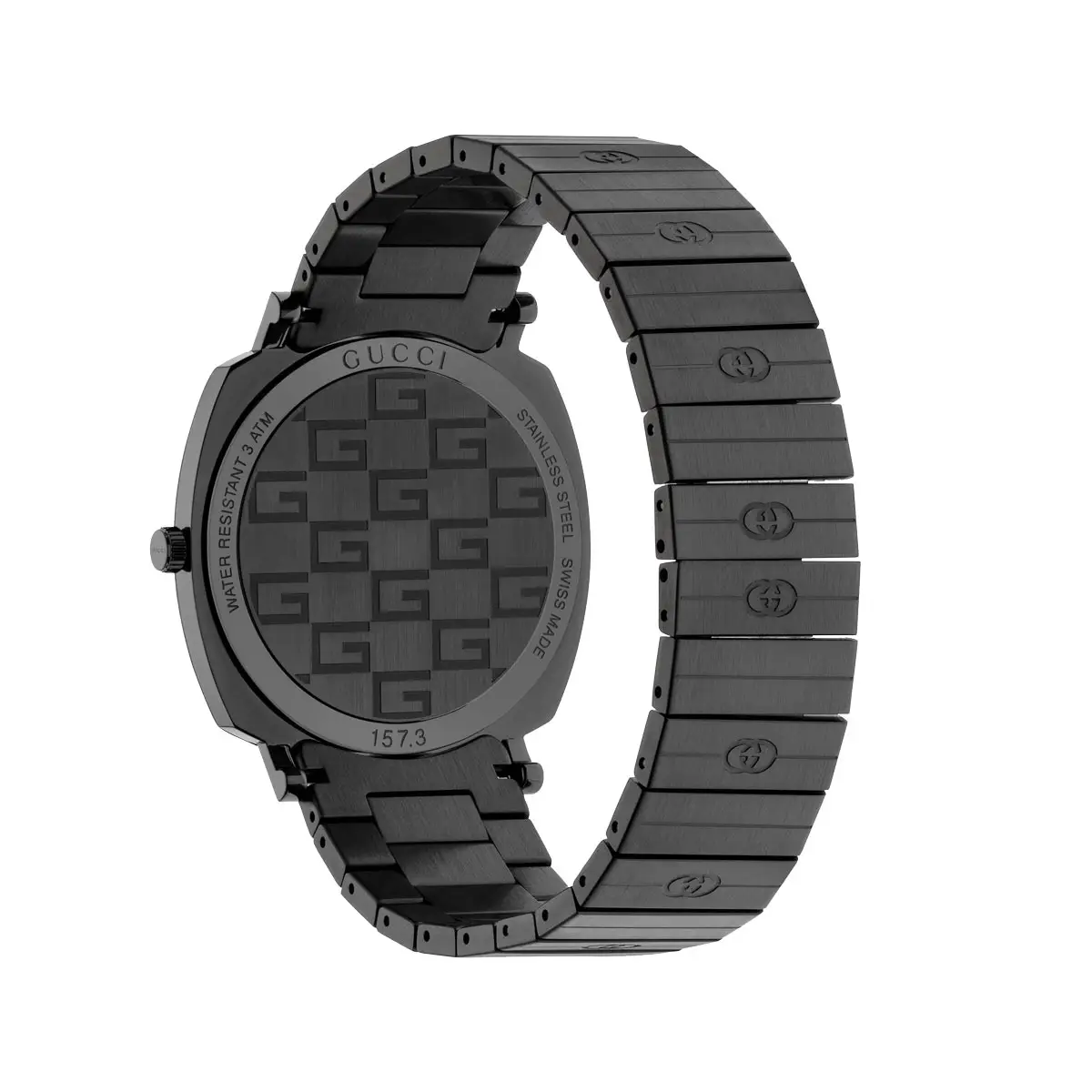 Die Gucci Grip YA157429 verbindet modernen Minimalismus mit der ikonischen Markenästhetik. Sie bietet ein eckiges 38-mm-Gehäuse aus Edelstahl / grauer PVD-Beschichtung, Saphirglas sowie eine Lünette aus Edelstahl / grauer PVD. Der Edelstahl-Armreif mit grauer PVD (Grauton) und Faltschließe sorgt für einen kompakten, eleganten Auftritt am Handgelenk. Auf dem klaren grauen analogen Zifferblatt befindet sich eine Datumsanzeige für den täglichen Überblick.