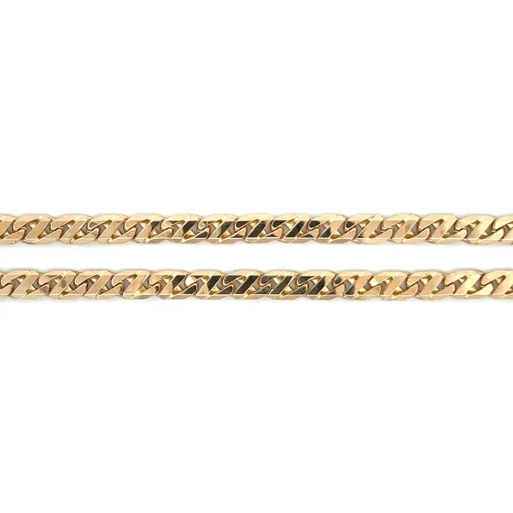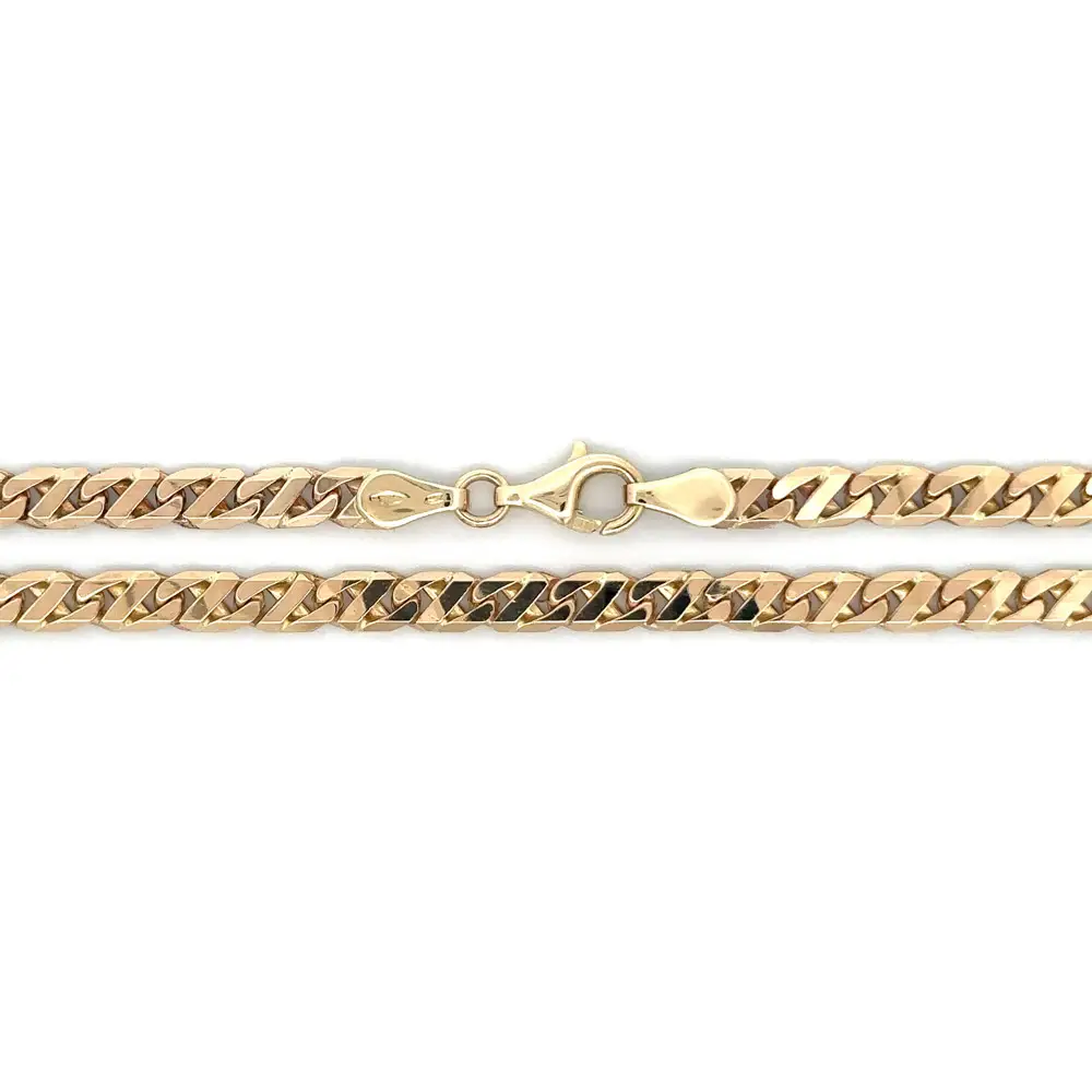 Diese luxuriöse Gucci-Kette ist aus 14 Karat Gelbgold (585/1000) gefertigt und beeindruckt durch ihr markantes Design mit präzise geschliffenen Gliedern. Mit einer Länge von 51 cm und einer Breite von 4,50 mm verleiht sie jedem Outfit einen ausdrucksstarken, zugleich eleganten Akzent – für Damen ebenso wie für Herren.