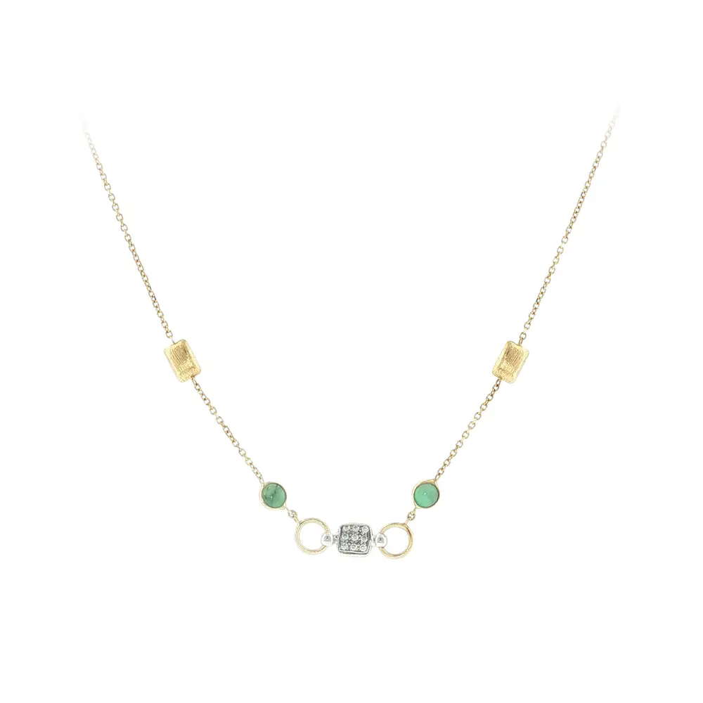 Halskette aus 14 Karat Gold mit grünen Steinen und Zirkonia