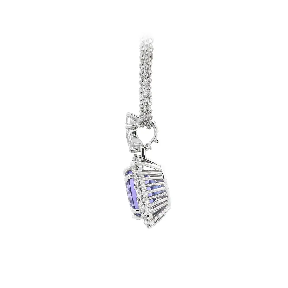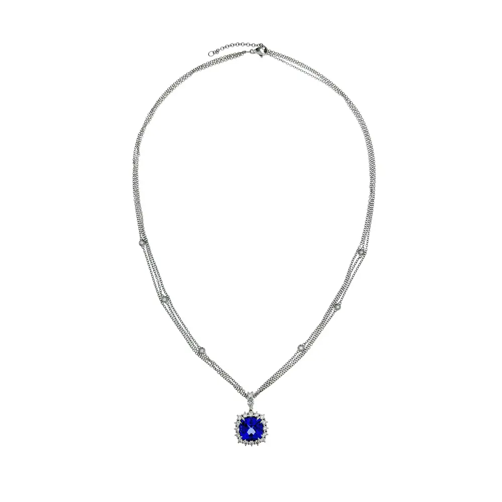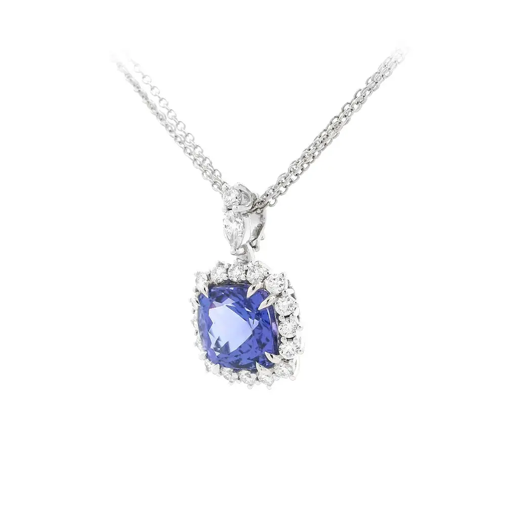 Halskette mit Tansanit im Halo-Design, umgeben von Diamanten