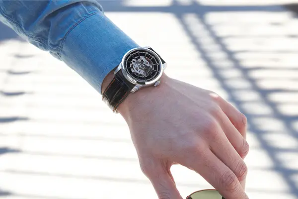 Welcher Vergleich passt besser zu der Hamilton American Classic Railroad Skeleton Automatic H40655731 Herrenuhr als eine Zeitmaschine? Das einzigartige Zifferblattdesign mit dem sichtbaren Uhrwerk fällt auf den ersten Blick ins Auge. Das weiche Lederarmband verleiht dem Modell Eleganz. Das 42-mm-Gehäuse ist aus robustem Stahl gefertigt und das Zifferblatt wird durch ein Saphirglas geschützt.