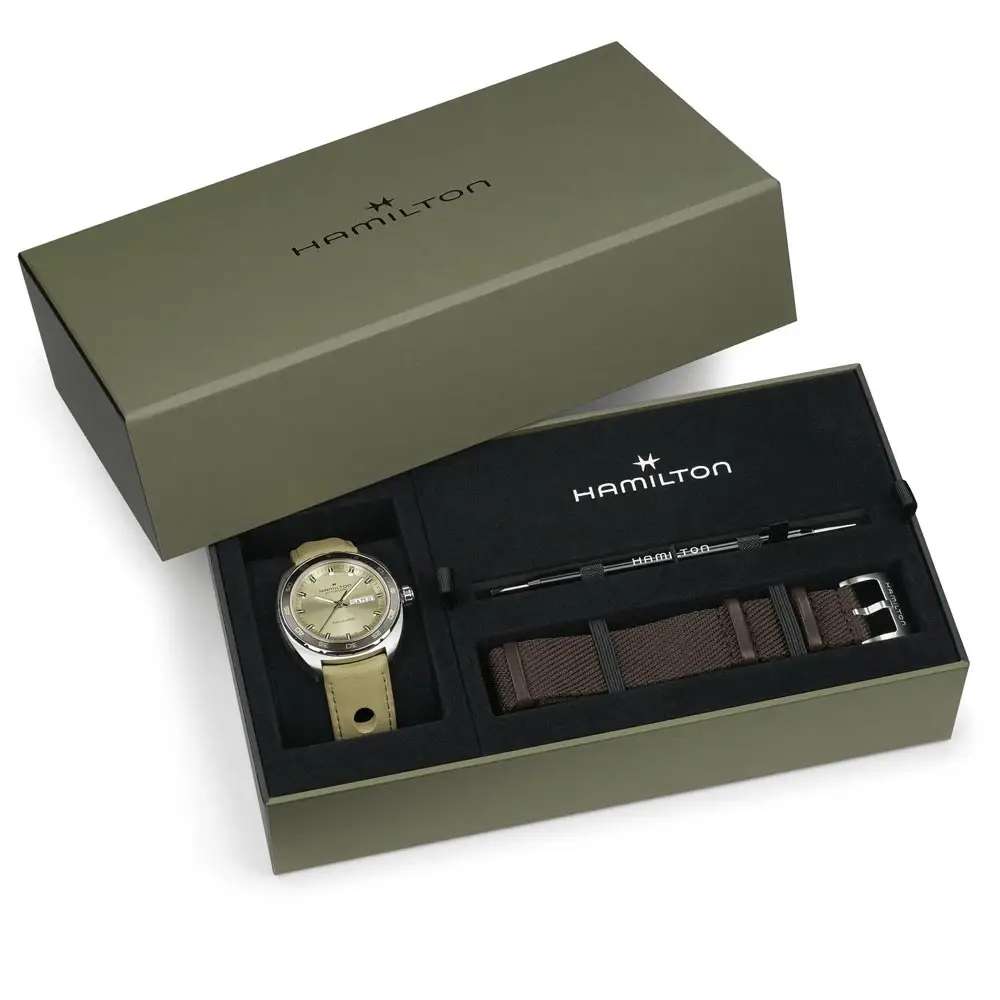Die KollektionAmerican Classic ist eine Hommage an die amerikanischen Wurzeln von Hamilton und ihre historischen Ikonen. Im Geiste der Vergangenheit präsentiert sie Modelle mit einer Retro-Ästhetik, inspiriert von Designs aus den 1930er bis 1960er Jahren, aber mit einem modernen Touch und Schweizer Präzision.