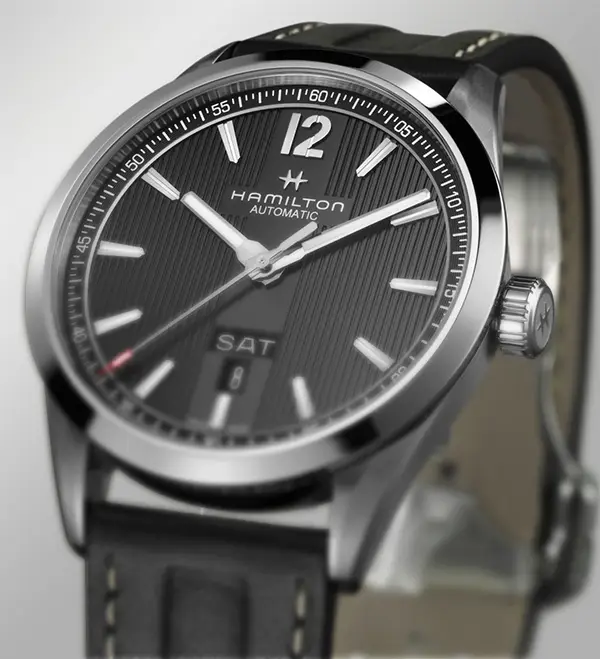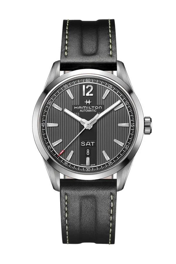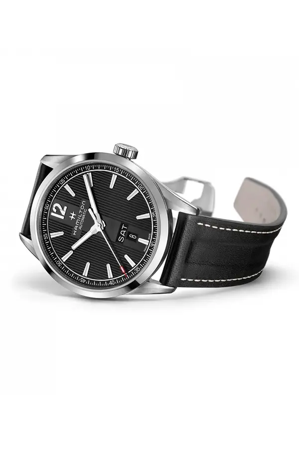 Die luxuriöse Herrenuhr Broadway Day Date Automatic H43515735 von Hamilton ist die offensichtliche Wahl für alle Männer, die Eleganz schätzen. Das schwarze Lederarmband wird durch ein silbernes 42mm Stahlgehäuse ergänzt. Das schwarze Zifferblatt informiert Sie über die Uhrzeit, das Datum und den genauen Tag. Sie können mit der Uhr bedenkenlos duschen gehen. Das mechanische Uhrwerk und der automatische Aufzug garantieren einen zuverlässigen Betrieb.