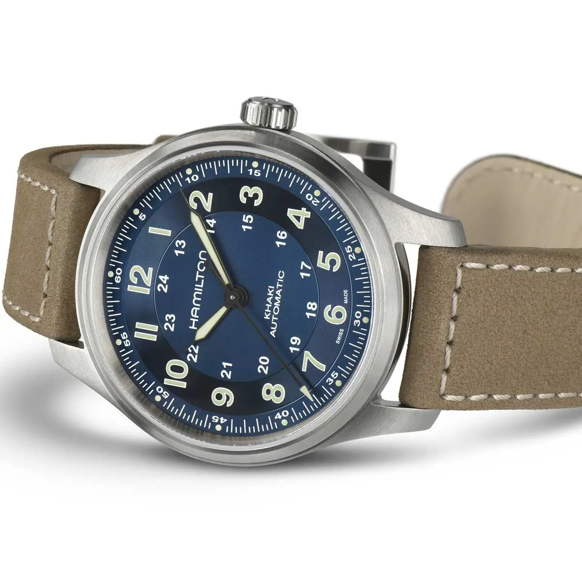 Khaki Field ist eine der kultigsten Kollektionen von Hamilton, die sich auf das reiche militärische Erbe der Marke stützt. Inspiriert von den ursprünglichen Uhren für amerikanische Soldaten aus der Mitte des 20. Jahrhunderts, verkörpert diese Linie Langlebigkeit, Funktionalität und leichte Ablesbarkeit - Werte, die auf dem Schlachtfeld und im Alltag entscheidend waren.