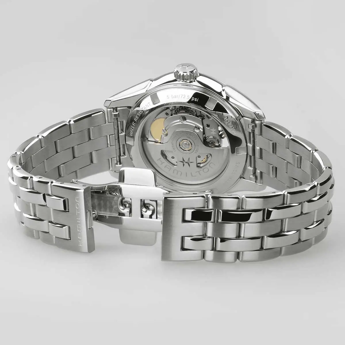 Jazzmaster ist die elegante und anspruchsvolle Kollektion von Hamilton, die klassisches Uhrendesign mit einem modernen Ansatz verbindet. Sie ist inspiriert von der Welt des Jazz - eine harmonische Mischung aus traditionellen Werten und Kreativität, die sich in den klaren Linien, raffinierten Details und dem vielseitigen Stil der Uhren widerspiegelt.
