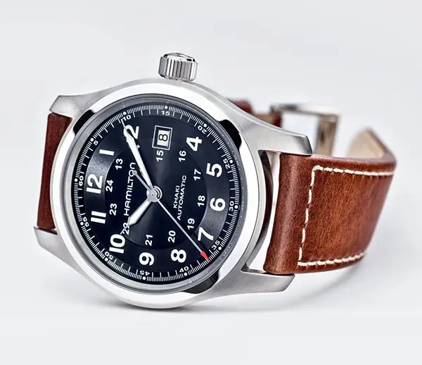 Die unverwechselbare Khaki Field Uhr verfügt über ein klares Zifferblatt mit kräftigen arabischen Ziffern, einer 24-Stunden-Skala und Leuchtzeigern. Sie werden in verschiedenen Größen und Ausführungen angeboten - von mechanischen Modellen mit Handaufzug über Automatikversionen bis hin zu Quarzvarianten. Die Gehäuse sind häufig aus mattiertem Stahl gefertigt und werden durch Textil-, Leder- oder Stahlarmbänder ergänzt, die dem täglichen Verschleiß standhalten.