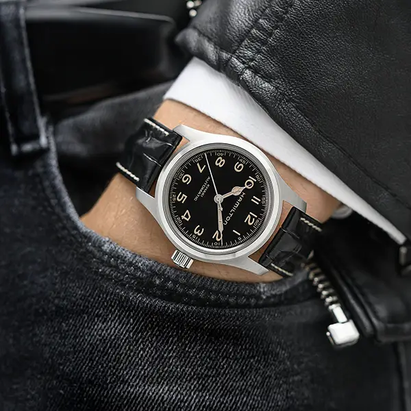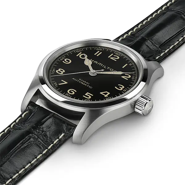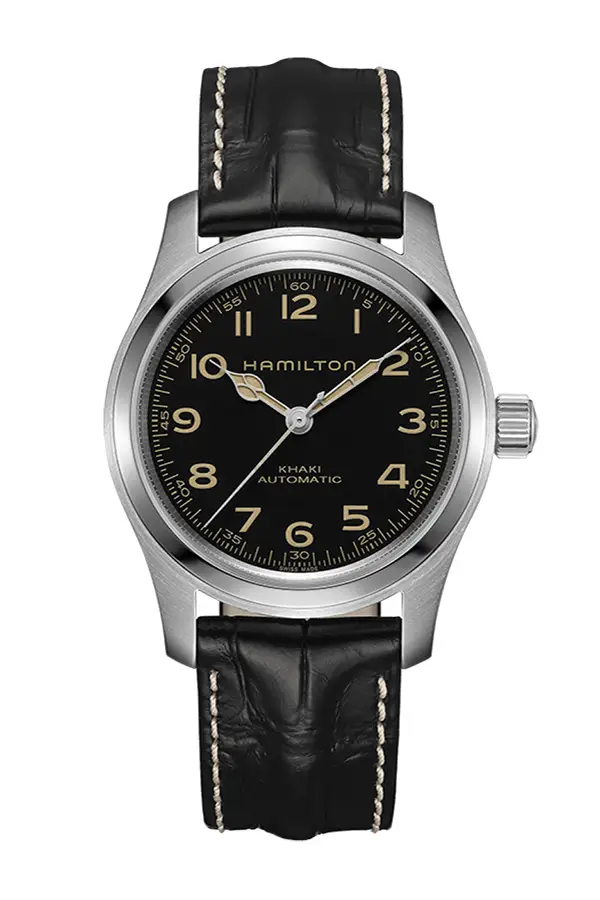 Khaki Field ist eine der kultigsten Kollektionen von Hamilton, die sich auf das reiche militärische Erbe der Marke stützt. Inspiriert von den ursprünglichen Uhren für amerikanische Soldaten aus der Mitte des 20. Jahrhunderts, verkörpert diese Linie Langlebigkeit, Funktionalität und leichte Ablesbarkeit - Werte, die auf dem Schlachtfeld und im Alltag entscheidend waren.