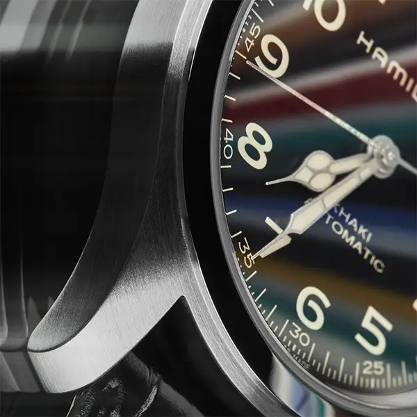 Die unverwechselbare Khaki Field Uhr verfügt über ein klares Zifferblatt mit kräftigen arabischen Ziffern, einer 24-Stunden-Skala und Leuchtzeigern. Sie werden in verschiedenen Größen und Ausführungen angeboten - von mechanischen Modellen mit Handaufzug über Automatikversionen bis hin zu Quarzvarianten. Die Gehäuse sind häufig aus mattiertem Stahl gefertigt und werden durch Textil-, Leder- oder Stahlarmbänder ergänzt, die dem täglichen Verschleiß standhalten.