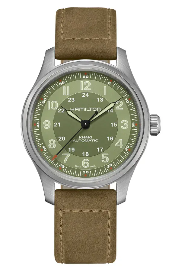 Khaki Field ist eine der kultigsten Kollektionen von Hamilton, die sich auf das reiche militärische Erbe der Marke stützt. Inspiriert von den ursprünglichen Uhren für amerikanische Soldaten aus der Mitte des 20. Jahrhunderts, verkörpert diese Linie Langlebigkeit, Funktionalität und leichte Ablesbarkeit - Werte, die auf dem Schlachtfeld und im Alltag entscheidend waren.