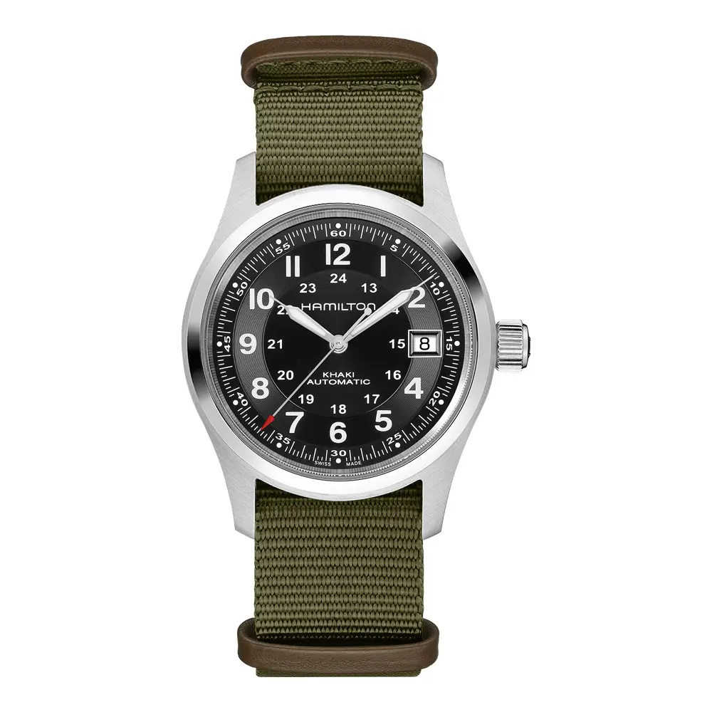 Khaki Field ist eine der kultigsten Kollektionen von Hamilton, die sich auf das reiche militärische Erbe der Marke stützt. Inspiriert von den ursprünglichen Uhren für amerikanische Soldaten aus der Mitte des 20. Jahrhunderts, verkörpert diese Linie Langlebigkeit, Funktionalität und leichte Ablesbarkeit - Werte, die auf dem Schlachtfeld und im Alltag entscheidend waren.
