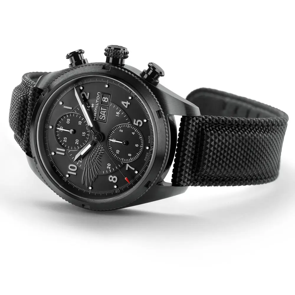 Im Inneren arbeitet das Automatikwerk H-21 mit Chronographenfunktion und einer Gangreserve von bis zu 60 Stunden. Zusätzlich verfügt die Uhr über Datums- und Tagesanzeige. Geschützt wird das Zifferblatt durch Saphirglas mit Antireflexbeschichtung, die Wasserdichtigkeit 100 m (10 ATM) eignet sich zum Schwimmen.