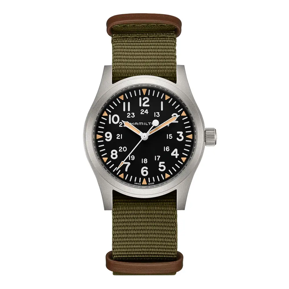 Die Hamilton Khaki Field Mechanical steht für reine Mechanik, militärische Eleganz und Schweizer Präzision – eine Uhr für Liebhaber von Tradition, Beständigkeit und Stil.