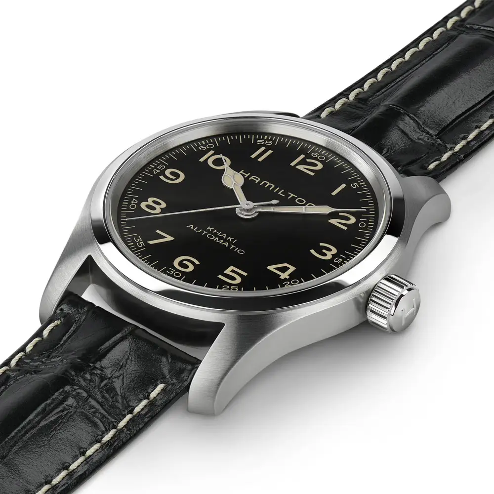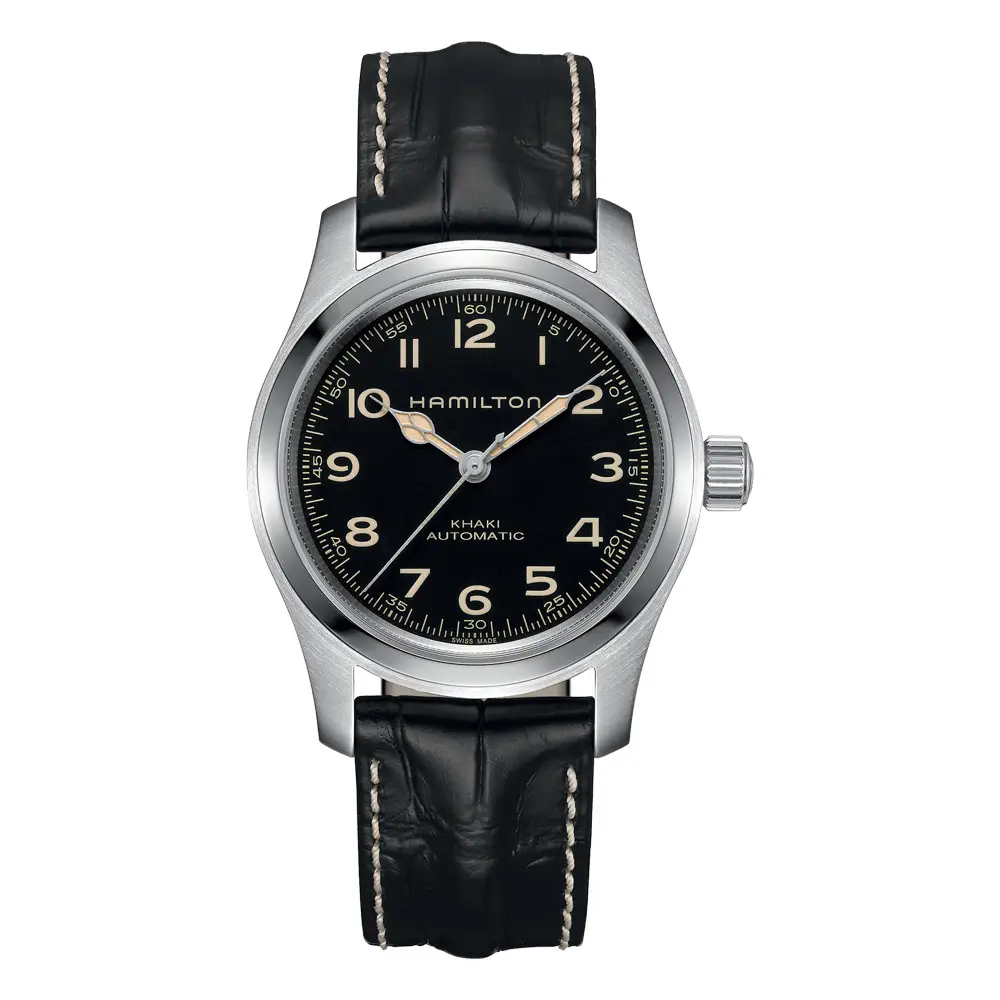 Khaki Field ist eine der kultigsten Kollektionen von Hamilton, die sich auf das reiche militärische Erbe der Marke stützt. Inspiriert von den ursprünglichen Uhren für amerikanische Soldaten aus der Mitte des 20. Jahrhunderts, verkörpert diese Linie Langlebigkeit, Funktionalität und leichte Ablesbarkeit - Werte, die auf dem Schlachtfeld und im Alltag entscheidend waren.