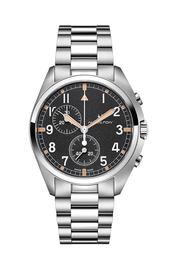 Die KollektionKhaki Aviation von Hamilton ist eine Hommage an die Wurzeln der Marke in der Luftfahrt und ihre Zusammenarbeit mit Piloten und dem Militär. Diese Linie ist von den Navigationsuhren für Piloten aus dem 20. Jahrhundert inspiriert, erweckt sie aber in einem modernen, technisch fortschrittlichen Design zum Leben.