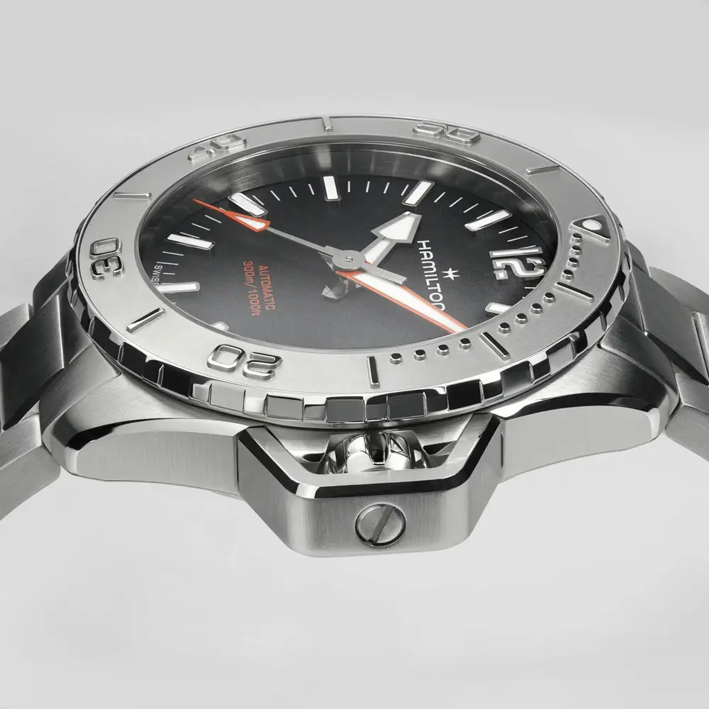 Khaki Navy ist die Kollektion von Hamilton für Liebhaber von Wassersport, Abenteuer und nautischem Stil. Sie knüpft an die Tradition der Hamilton-Nautikuhren an und kombiniert eine robuste Konstruktion, hohe Wasserdichtigkeit und ein unverwechselbares Design, das sich sowohl an Deck als auch unter Wasser bewährt.