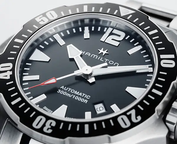 Khaki Navy ist die Kollektion von Hamilton für Liebhaber von Wassersport, Abenteuer und nautischem Stil. Sie knüpft an die Tradition der Hamilton-Nautikuhren an und kombiniert eine robuste Konstruktion, hohe Wasserdichtigkeit und ein unverwechselbares Design, das sich sowohl an Deck als auch unter Wasser bewährt.