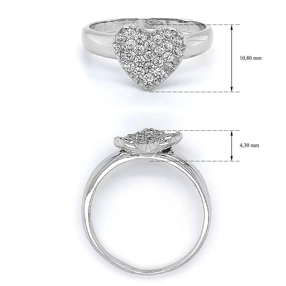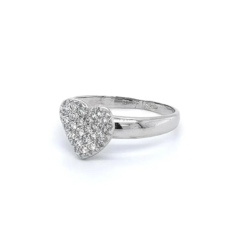 Herzring mit Zirkonen aus Weißgold