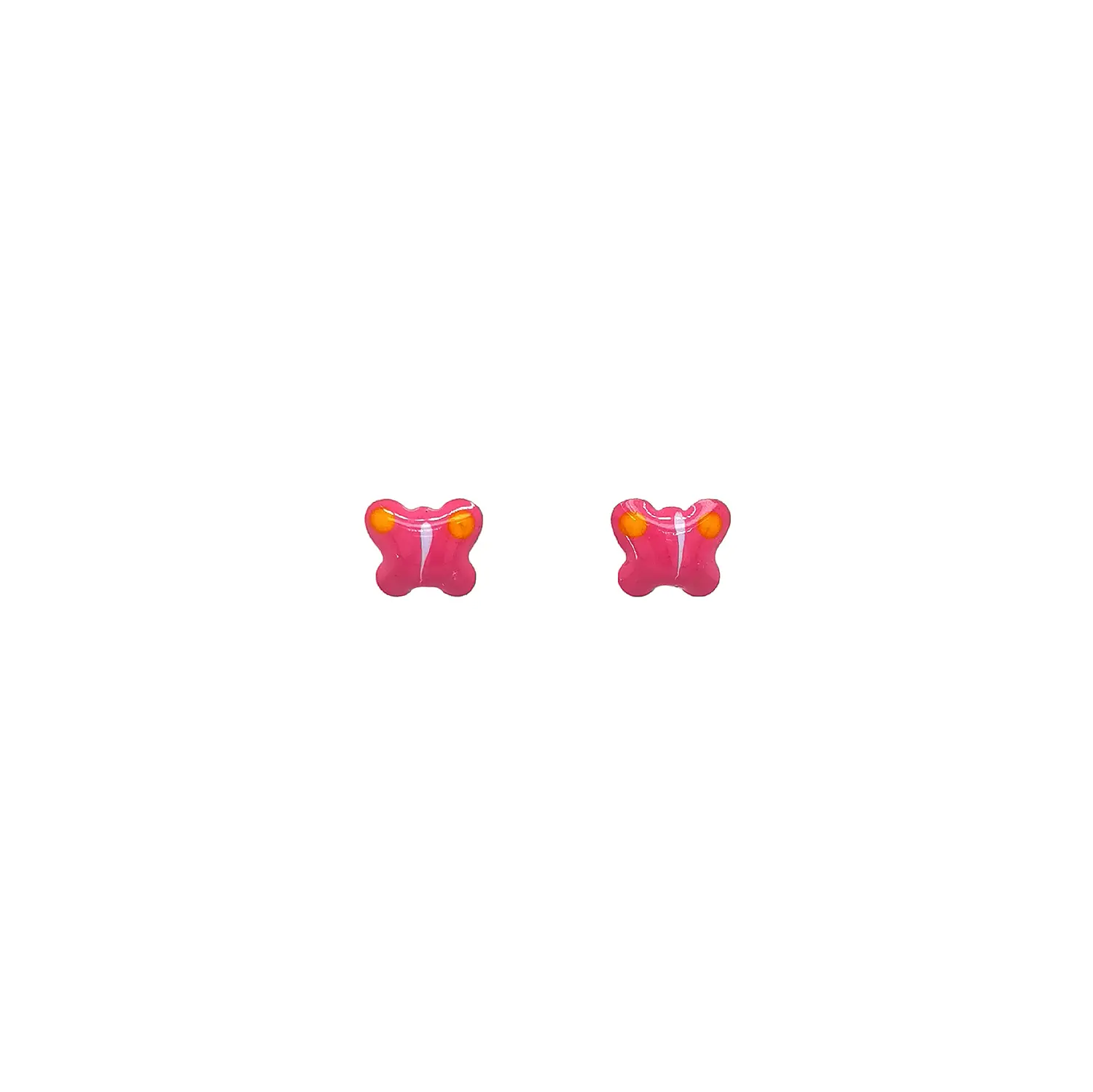 Diese entzückenden Kinderohrringe in Schmetterlingsform bestehen aus hochwertigem Gold, das selbst für empfindliche Kinderohren angenehm und sicher ist. Die rosa Emaille mit orangefarbenen Details verleiht dem Schmuckstück einen fröhlichen und verspielten Charakter, den kleine Mädchen lieben werden.