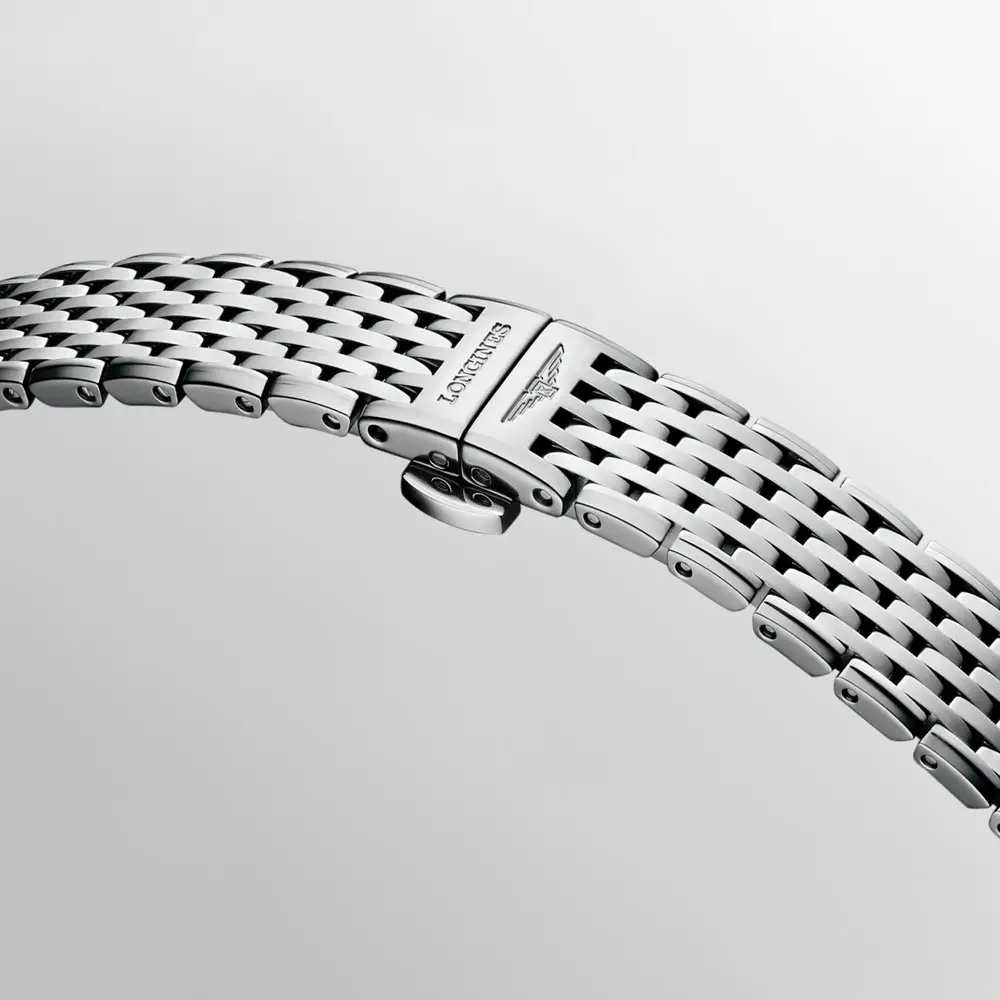Die La Grande Classique de Longines L4.209.4.81.6 ist die perfekte Verkörperung zarter weiblicher Eleganz in minimalistischem Design. Ihr rundes 24 mm Edelstahlgehäuse wirkt dezent und elegant, während das Saphirglas hervorragenden Kratzschutz bietet.
