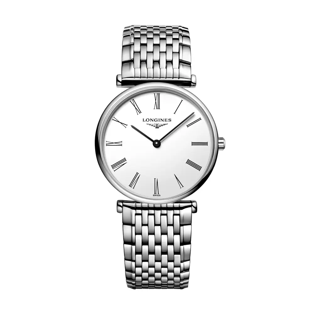 Das klare weiße Zifferblatt mit schwarzen römischen Ziffern und schlanken Zeigern betont den klassischen Charakter des Modells. Das minimalistische Design der La Grande Classique-Kollektion steht für edle Schlichtheit und vielseitigen Stil, der zu jedem Anlass passt.