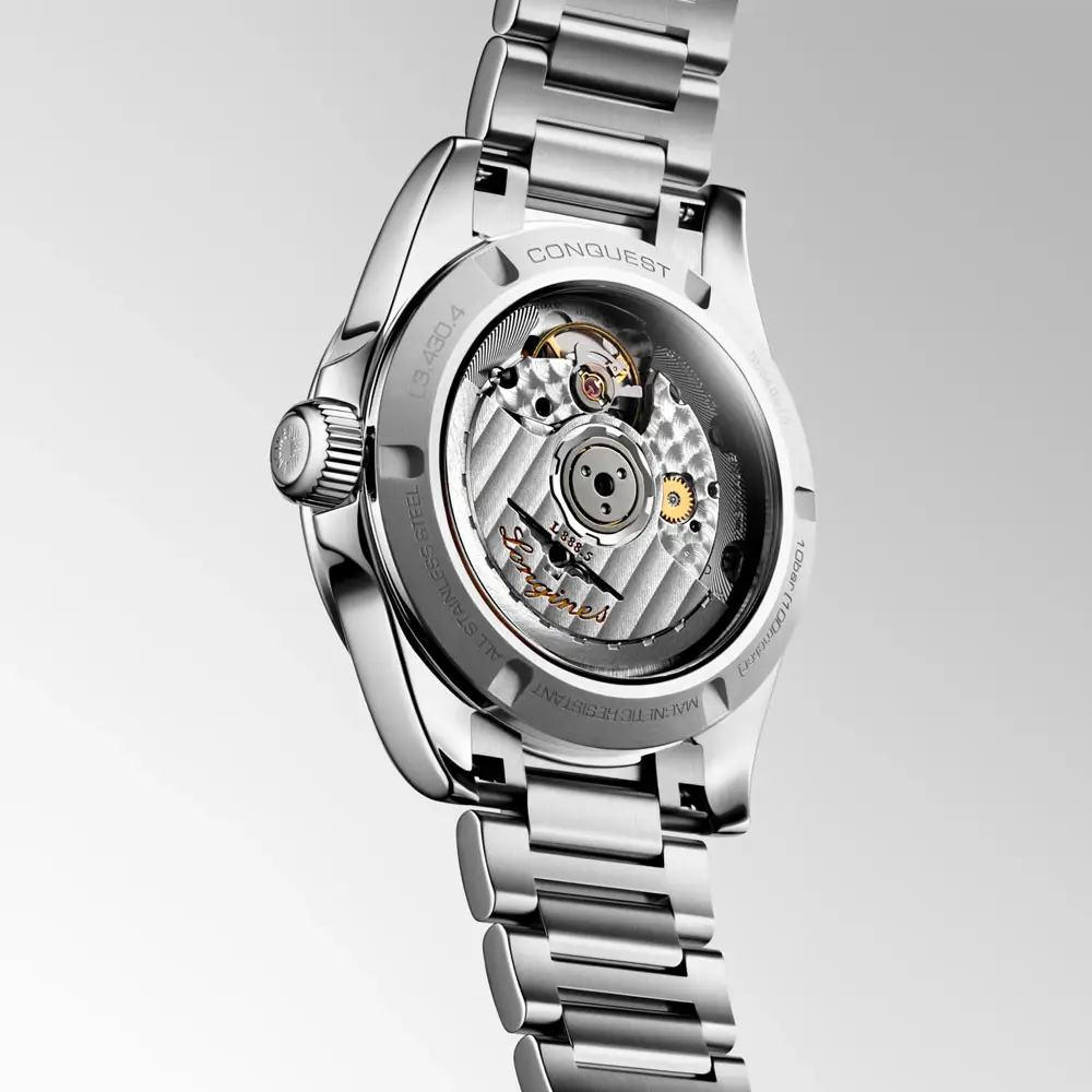 Im Inneren arbeitet das Automatikwerk Kaliber L888 mit Silizium-Unruhspirale und einer Gangreserve von 72 Stunden, das Präzision und Zuverlässigkeit garantiert. Abgerundet wird die Uhr durch ein Edelstahlarmband mit dreifacher Sicherheitsfaltschließe, das Komfort und Sicherheit vereint. Dieses Modell verkörpert den Geist der Conquest-Kollektion – Eleganz, Leistung und Schweizer Tradition.