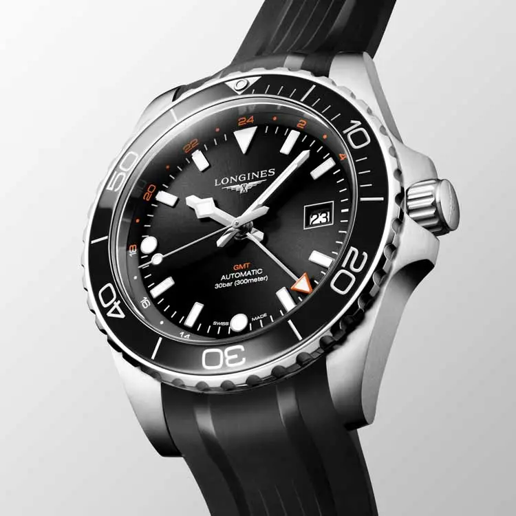 Dank 30 ATM (300 Meter) Wasserdichtigkeit ist das Modell auch für das Tiefseetauchen geeignet. Das schwarze Kautschukarmband mit Faltschließe bietet hohen Tragekomfort und sicheren Halt. Die Longines HydroConquest GMT L3.890.4.56.9 ist die perfekte Wahl für Männer, die sportliche Funktionalität, Reisekomfort und erstklassige Schweizer Uhrmacherkunst suchen.